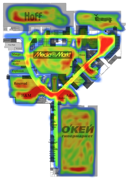 Опять же по причине того, что мобильному приложению известно местоположение посетителя внутри здания в каждый конкретный момент, это позволяет накапливать статистику о посещении торгового центра. Определять какие части здания у какой аудитории более посещаемы. Выявлять различные зависимости, наподобие, что 80% посетителей магазина Adidas посещают также и Nike и т.д.