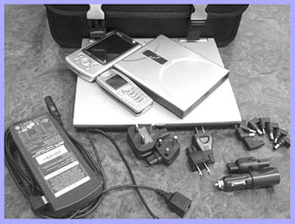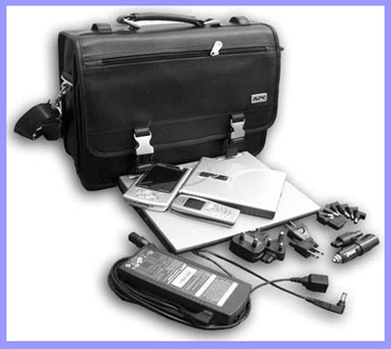 Итак, вот тот мобильный офис, который мы пробовали "на зуб". В состав входят: ноутбук Roverbook Discovery B215, КПК Fujitsu Siemens Pocket LOOX 610 BT/WLAN, телефон Nokia 6610i и сумка с фильтром для питания всех этих устройств APC TravelPower Case. Это оптимальное мобильное решение, которое позволяет менеджеру подготовить, отредактировать и отправить в офис документ, менеджеру по работе с клиентами оперативно принять заказ, рассчитав его стоимость, управленцу получить информацию из офиса, продумать и принять решение, а при необходимости составить и передать в офис приказ.