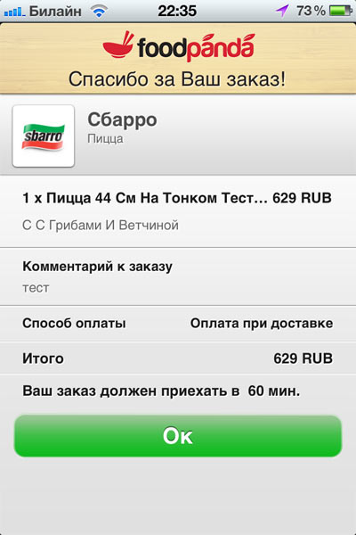 Сразу после оформления заказа foodpanda передает его ресторану. Ресторан связывается с вами, подтверждает заказ, уточняет адрес, готовит еду, и привозит ее вам.
