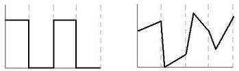 Ох уж этот коварный Джиттер - скажет умудренный опытом аудиофил. Да, именно, коварный - это не явные ошибки считывания, когда какой-то сектор диска не может считаться вообще, а своеобразные искажения информации. Наверно, вы имеете представление о том, как работает CD или DVD ROM. Луч лазера попадает на поверхность диска и в зависимости от того, куда он попал, ведет себя по-разному. На нижней стороне диска имеется всего одна спиралевидная дорожка, на которой имеются либо питы, либо ленды, то есть участки с разной отражающей способностью. Если луч попадает на ленд - гладкую, зеркальную поверхность дорожки, он отражается, попадает в приемник и фиксируется как двоичная единица. Если на пути луча встретился пит - затемненный участок, который поглощает свет, то луч рассеивается в нем, соответственно, на приемник не попадает и фиксируется двоичный ноль. Таким образом получается дискретный сигнал, либо сигнал фиксируется - единица, либо нет - ноль. Так происходит в идеале. Если диск плохой или записан на плохом оборудовании, то лазерный луч может частично отразится и частично поглотится, то есть приемник уже не сможет зафиксировать полноценную единицу, если на него попала только часть луча. Смотрите рисунок. Слева данные после считывания в нормальном виде, справа сигнал, искаженный джиттером.