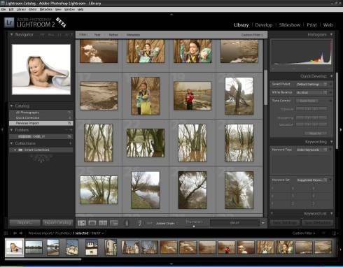 Quick Collection (Быстрая коллекция) - отображаются только фотографии, отмеченные для оперативной подборки. Иначе говоря, в Lightroom предусмотрен механизм коллекций, с помощью которого можно организовать тематическую группировку фотографий вне зависимости от их реального месторасположения, например, собрать в одном месте все женские портреты.