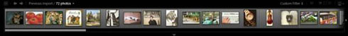 В нижней части интерфейса программы расположена полоса прокрутки Filmstrip (Лента), которая служит для навигации по библиотеке снимков, быстрого отбора изображений для сравнения или помещения их в Quick Collection. Эта панель похожа на фотоплёнку и фотографии в ленте соответствуют выбранной коллекции или результату поиска снимков по фильтру.