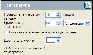 - "Проверять температуру каждые ... секунд". Эта опция определяет интервал времени между проверками температуры. Минимально возможный интервал равен 10 секундам.