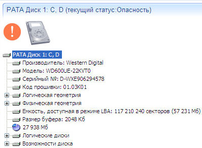 Под словесным описанием состояния диска распложена сопровождающая надпись. Наилучший вариант: "Никаких особых действий для предотвращений потери данных предпринимать не стоит". Наихудший: "Сделайте резервную копию всех важных данных с этого диска и постарайтесь больше не пользоваться этим устройством". Будем надеяться, что это нам не грозит.