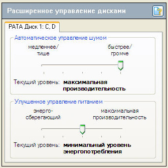- "Улучшенное управление питанием". Позволяет сократить энергопотребление жесткого диска, жертвуя для этого небольшим падением производительности.