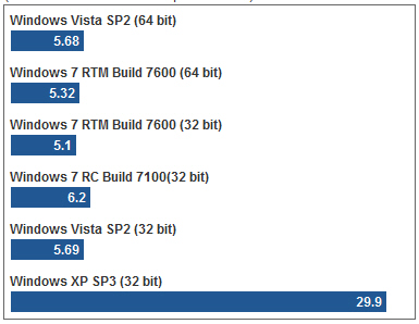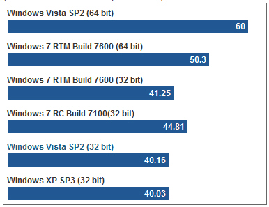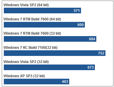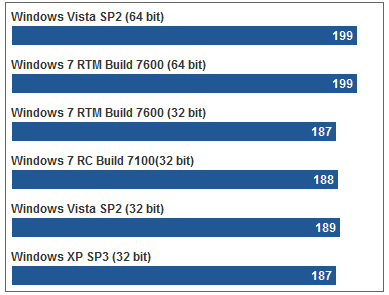 Windows 7 выглядит быстрее Windows XP и Windows Vista, но проявляется это не всегда - в некоторых случаях Windows 7 работает медленнее Windows Xp И Vista. Лаборатория CNET протестировала 32х разрядную версию Windows: Windows 7 RTM build 7600, Windows 7 Release Candidate build 7100, Windows Vista с Service Pack 2, и Windows XP SP3, на Inspiron Desktop 530 Mini Tower, работающем под Intel Core 2 Duo Processor E4500 2.20 GHz, с 128MB NVIDIA 8300 GS видеокартой, 4GB of RAM оперативной памяти, и двумя 320GB SATA 7,200rpm жесткими дисками.