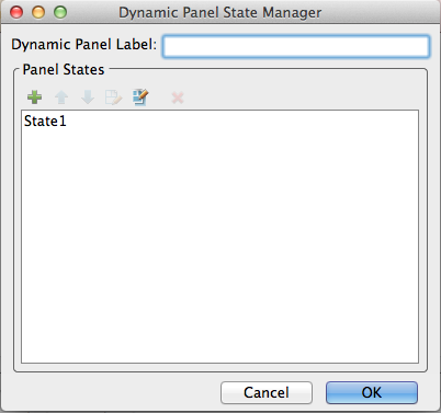 Двойной клик на панели вызывает окно управления динамической панелью Dynamic Panel State Manager. В этом окне можно дать название динамической панели, и определить их содержание в различных состояний.