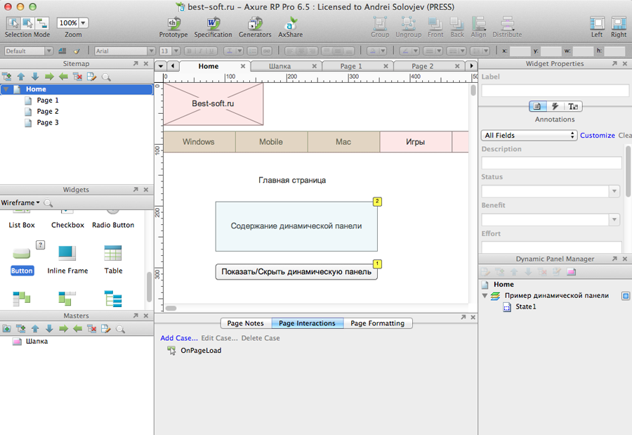Рассмотрим кратко основные особенности Axure RP.
