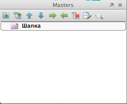 Давайте начнем с создания шапки. Поскольку шапка есть на всех страницах, то хорошо бы было нарисовать ее один раз, а потом просто вставить на все страницы. Для этих целей служит панель Masters. Давайте создадим новый элемент Master с названием шапка, а внутри составим саму шапку.