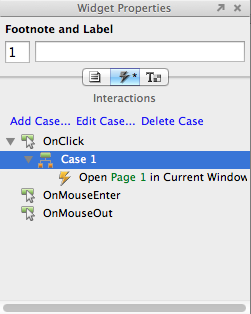 Давайте сделаем, чтобы при нажатии на элементы шапки открывались соответствующие страницы. Проще всего использовать виджет Image Map Region для обозначения областей нажатия. Перетаскиваем Image Map Region поверх нужных элементов, и добавляем ссылки на соответствующие страницы в окне "Widget Properties".
