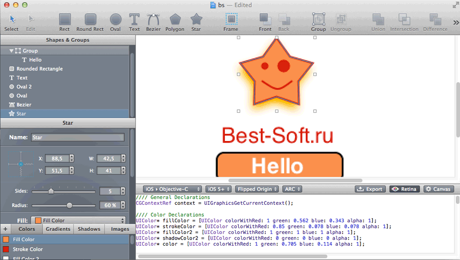 PaintCode - векторный редактор с преобразованием в Objective-C