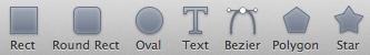 Сверху расположена панель инструментов, которая содержит основные графические примитивы - прямоугольник, прямоугольник с скругленными углами, овал, текст, фигура Бизье, полигон и звезда.