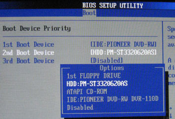 Если же увидели один из вариантов сообщений об ошибке при загрузке с винчестера, то возможно несколько ситуаций. В лучшем случае, после ваших опытов устройство, которое было загрузочным просто не указано BIOS в списке возможных устройств для загрузки. Пункт, меню называется Boot Device Priority. Наиболее оптимальный вариант, если вы любите экспериментировать с операционными системами, указать первым устройством оптический привод, а вторым - загрузочный винчестер. До него дело дойдет, если в дисководе не будет диска, в том же случае, если загрузка с винчестера не требуется, достаточно вставить нужный диск в привод и загружаться с него. Если же вы постоянно работаете только с одной системой, то первым устройством указываем винчестер, иначе, забыв обычный диск в приводе, можно получить немного нервотрепки, когда компьютер вдруг прекратит загрузку. Современные BIOS гораздо дружественней к пользователю и позволяют определить винчестер не только по его размещению (например, IDE, SATA1 и т.д.), но и по конкретной модели. Вы ведь знаете названия всех комплектующих внутри вашего железного друга?