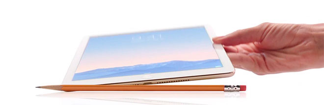 В своем рекламном ролике Apple сравнила толщину iPad Air 2 с обычным карандашом.