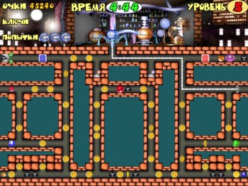 Время ограничено, за две-три минуты нужно успеть собрать всё золото, и сделать это не так-то просто. Вам придется использовать переключатели и ключи разных цветов и типов. Для каждой двери - собственный.