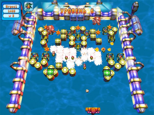 Коварные марсиане сделали так, что шар может попасть не только в кирпичи и хитрые ловушки, но и пролететь за пределы игрового поля. Последнее неминуемо приводит к сильнейшему взрыву. Защита вашего катера может выдержать только несколько таких попаданий. Будьте осторожны и с обслуживающими стадион зелёными, синими и красными трансформерами. Они будут мешать вам, постоянно принося на игровое поле новые кирпичи и восстанавливая повреждённые.