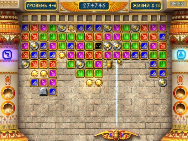 В этой логической аркаде вам предстоит очистить игровое поле от разноцветных блоков, непрерывно появляющихся в верхней части экрана. Справиться с этой задачей вам помогут священные золотые жуки-скарабеи - они могут уничтожать группы из трех и более блоков одного цвета. Кроме того, на игровом поле время от времени будут появляться и особые круглые фишки, заключающие в себе бонусы, а также световые бомбы, аннигилирующие окружающие блоки. Но будьте предельно осторожны - бонусы не всегда могут помочь, поэтому вам особенно пригодятся внимание и сообразительность.