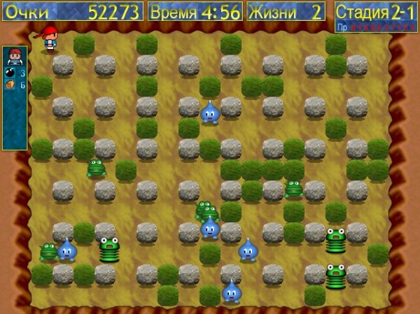 Взрывать монстров непросто: нужно точно рассчитать время установки бомбы, успеть спрятаться в укрытие до взрыва и не попасться в лапы другим монстрам. Еще сложнее справиться с огромными и агрессивными монстрами-боссами, обитающими на последнем уровне каждой стадии. Таких монстров будет девять - по одному на каждую из 9 стадий, в каждой из которой - по 9 уровней.