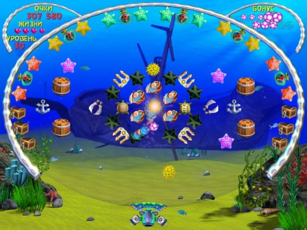 За каждую уничтоженную фишку Нептун подарит вам золотой слиток, монетку или редкостный самоцвет. Особенно пригодятся монеты - с их помощью можно не только увеличить свой капитал, но и открыть доступ к одной из пяти дополнительных мини-аркад.