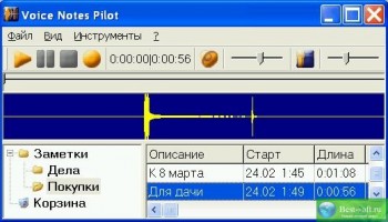 Voice Notes Pilot - программа для ведения голосовых заметок. Программа предоставляет для этого больше возможностей, чем обычный диктофон. Вы можете легко управлять своими заметками, сортировать их по темам, фильтровать, сохранять в файлы и отсылать по электронной почте.
