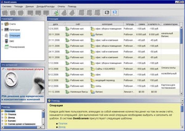 В остальном DomEconom представляет все возможности современной системы учета домашних финансов:
