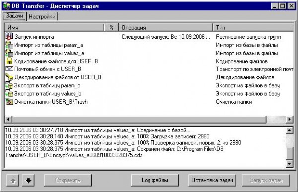 Программный комплекс предназначен для автоматического кодирования и передачи наборов данных, файлов, посредством модемов или электронной почты между предприятиями-партнерами через открытые каналы связи, такие как электронная почта (SMTP/POP3), модемное соединение, ftp-протокол, последовательный порт (RS232/RS485). Комплекс имеет модульную структуру, состоящую из элементарных задач: