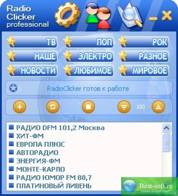 RadioClicker предназначен для прослушивания радио через Интернет на компьютере. Кроме приёма радиостанций, RadioClicker позволяет настраиваться на просмотр различных онлайн телеканалов. В программе собраны практически все РАДИО и ТВ станции, вещающие на русском языке.