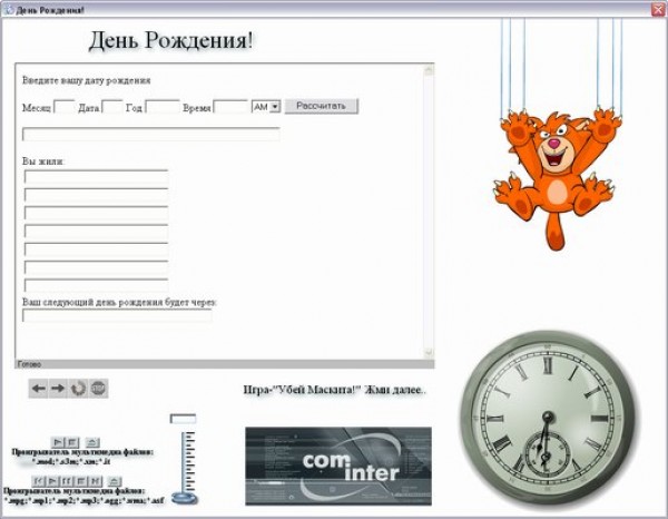 Программа произведёт рассчёт вашего возраста в днях, часах, минутах.