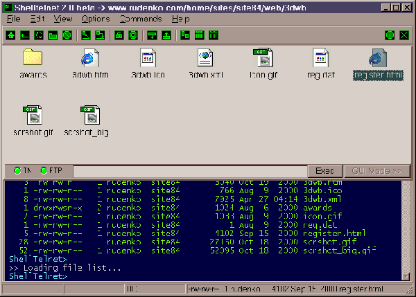 Телнет клиент, который используется для работы в Unix shell account. Позволяет просматривать файловую структуру аналогично традиционному Windows Explorer'у. Изменение прав доступа к файлам с помощью мыши. Копирование файлов на удаленном компьютере через клипборд и т.д.