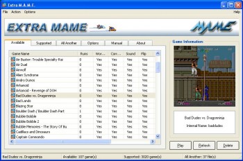 Extra M.A.M.E. - небольшая, Windows-совместимая графическая оболочка для эмулятора аркадных игр с игровых автоматов MAME. Автор MAME эмулятора - Nicola Salmoria и команда независимых разработчиков. Эмулятор позволяет играть в несколько тысяч классических и современных аркадных игр с игровых автоматов на вашем компьютере. ExtraMAME небольшая и простая в использовании оболочка, не требует сложных настроек, мощных систем и совместима со всеми играми MAME.