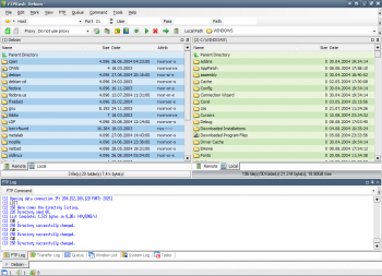 Простенький и достаточно удобный FTP-клиент, который позволяет не только переслать файлы между компьютером и сервером (туда и обратно), но также поддерживает передачу файлов непосредственно между серверами (FXP). Программа позволяет работать сразу с несколькими FTP одновременно, обладает гибким, настраиваемым интерфейсом, имеет встроенный Менеджер Задач, поддерживает работу с прокси. FTPRush может работать с SSL-соединениями, автоматические проверяет SFV-файлы при скачивании и загрузке и многое-многое другое.
