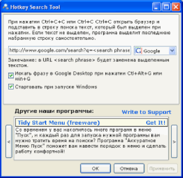 Используя Hotkey Search Tool, вы можете быстро запустить интернет-поиск по фразе, набранной или выделенной в любом приложении.