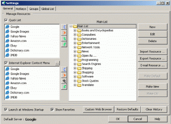 Выделите слово или текст, который вы хотите поискать, нажмите "горячую клавишу", например, Ctrl+C+C (вы можете назначить и другие комбинации клавиш) и откроется страница Google уже с результатами поиска.