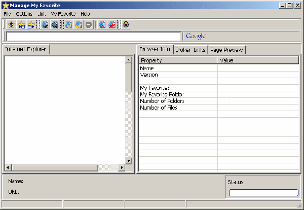 "My Favorite" Manager - программа предназначенная для управления содержимым папки "Избранное". Программа позволяет редактировать как название, так и адрес ссылки, проверять доступность ссылок, удалять недоступные ссылки, а также назначать любую папку в качестве "Избранного" и легко переключаться между такими папками. Содержимое страниц можно просматривить во встроенной вьювере, а недоступные страницы поискать по ключевым словам.