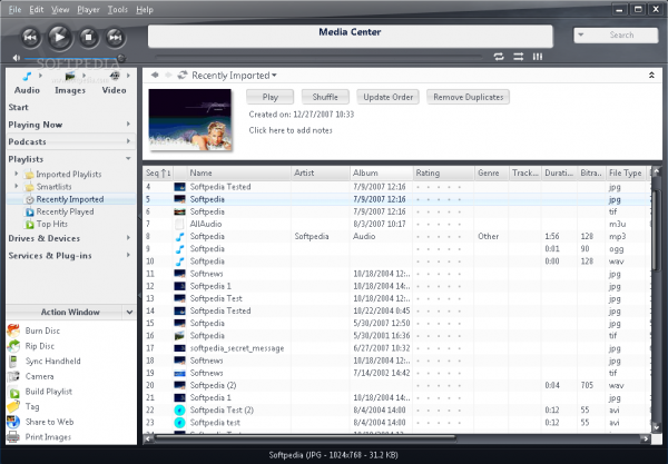 Программа Media Center позволяет создавать коллекции, проигрывать и управлять всеми вашими media файлами.