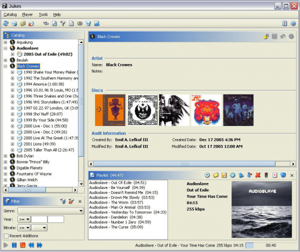 Jukes создан для настоящего любителя музыки! Jukes копирует CD на ваш компьютер и для следующего прослушивания вам уже не понадобиться диск.