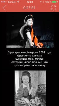 Т.е., например, один из героев спрашивает другого: "Постарел ли Сталин?", и в эту самую секунду приложение показывает 2 фотографии Сталина в 1941 и в 1945 годах.