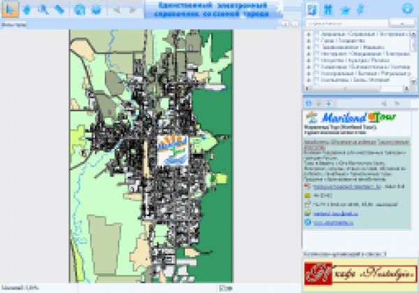 - расположение выбранной организации можно сразу же увидеть на схеме города.