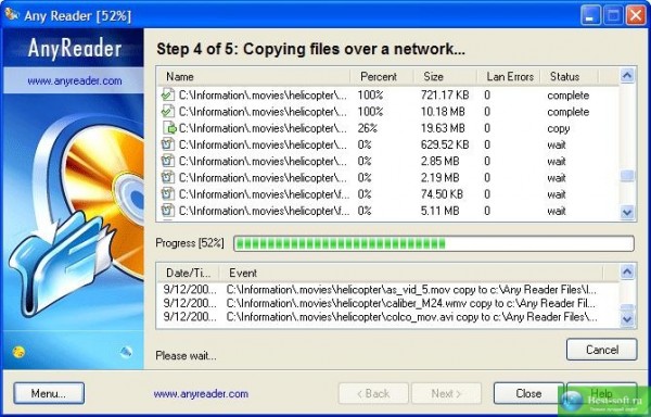 Программа AnyReader предназначена для копирования данных с любых плохочитаемых или поврежденных носителей. AnyReader легко и быстро прочитает данные с CD/DVD дисков, сетей LAN и Wireless LAN, флеш карт памяти, ZIP дисков и других носителей доступных как буква диска в MS Windows. Уникальность программы AnyReader заключается в возможности продолжать чтение/копирование информации после возникших ошибок чтения или потери соединения в различных видах сетей (особенно актуально для сетей Wi-Fi). Важно! Использование программы AnyReader абсолютно безопасно и не наносит вреда вашим данным. Исходные файлы останутся нетронутыми, AnyReader сохранит новые копии файлов в то место, которое вы укажете.