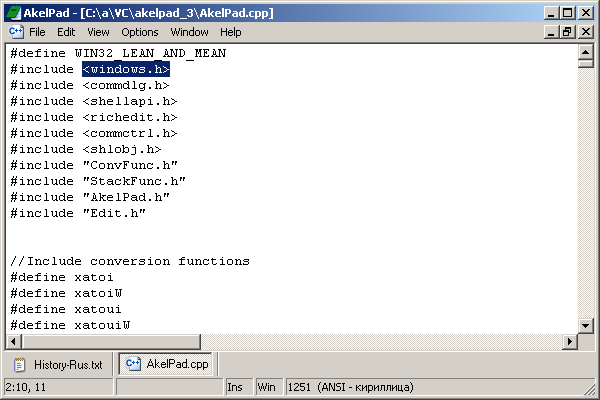 AkelPad - текстовый редактор с открытым исходным кодом, созданный, чтобы быть маленьким и быстрым. Однооконный режим (SDI), многооконный режим (MDI);
