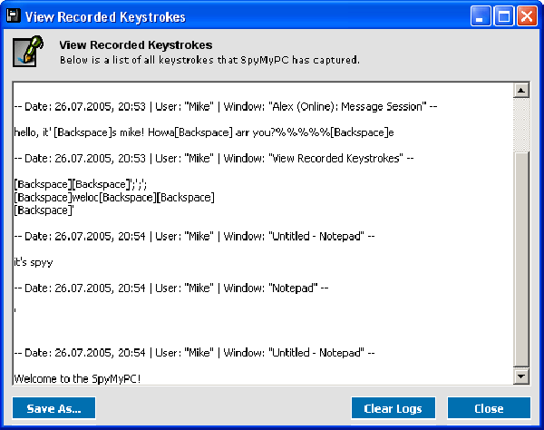 Прграмма "клавиатурный шпион". Если Вы хотите узнать какие действия соверншают другие люди на вашем компьютере, то именна эта программа поможет Вам в этом.