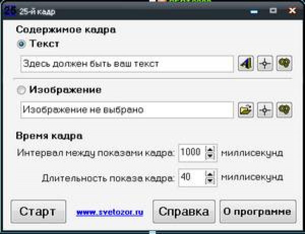 Простая программа реализующая эффект 25-го кадра во время обычной работы за компьютером.