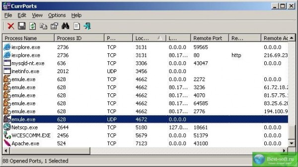 Программа отображает все открытые TCP/IP порты, и приложения, которые используют их. Работает без инсталляции. Есть экспорт в HTML.