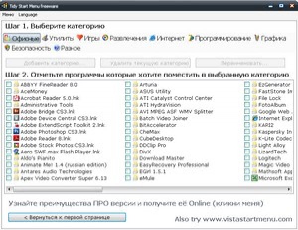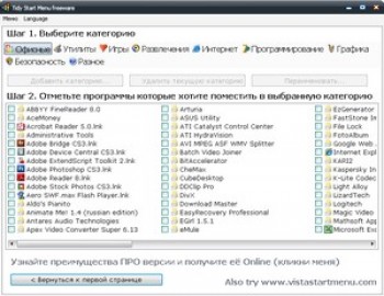 Если вы устали от поиска программ в длинном списке из меню пуск, то эта программа для вас. Она позволяет все программы находящиеся в меню пуск разбить по категориям. Благодаря этому меню приобретает аккуратный вид и вы очень просто и быстро можно найти любую программу. Например вы сможете все игры объединить в категорию "игры" и при заходе в меню, вместо списка игр, вы увидите пункт "игры" уже в котором сможете найти вашу игру.