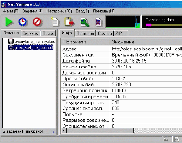 Net Vampire - мощная, но простая в использовании программа для скачивания файлов из Интернета,хорошо настраиваемая, с возможностью расширения за счет использования разнообразных дополнений и обновлений. Специальные средства тестирования сайтов позволяют легко выбрать самый быстрый и самый надежный сайт. Также Net Vampire собирает статистику для каждого сайта, что также помогает правильно выбрать наилучший сайт сыкачивания файла. Встроенные средства поиска находят нужные вам файлы не только на FTP, но и на HTTP серверах. Программа способна строить оглавление FTP директорий и составлять список URL в HTML документах.