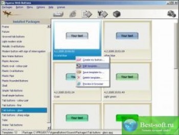 Программа для создания красивых кнопок для веб-сайтов. Содержит более 250 готовых шаблонов. Поддерживает генерацию HTML и Java Script кода. Работает с форматами: GIF,PNG,JPEG,BMP.