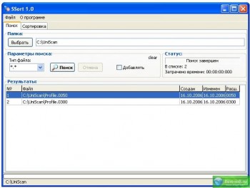 Программа для сортировки файлов. Сортировка осуществляется по дате создания, дате изменения или расширению. Как все работает: Шаг первый - Поиск файлов: Программа ищет файлы по маске в указанной пользователем папке (включая подпапки). Шаг второй - Сортировка: В указанную пользователем папку будут помещены отсортированные файлы. В зависимости от критерия сортировки. Пример: 1. При выборе "по дате создания" или "по дате изменения": "Указанная пользователем папка"\Год\Месяц\День\ (подпапки "Месяц"\"День" по желанию пользователя). 2. При выборе "по расширению": "Указанная пользователем папка"\Расширение (если файл не имеет расширения он будет помещен в "Указанная пользователем папка"\ ). Возможен выбор действия над файлами: «копировать» или «переместить» (!Внимание! При перемещении сделать откат нельзя!)