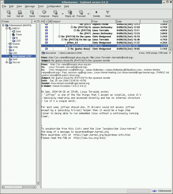 Почтовый клиент, простой в использовании и удобный в работе. Sylpheed работает не только с протоколами POP3, IMAP4 и SMTP, но также NNTP (NetNews) и IPv6, являющиеся следующим поколением интернет-протоколов. Также программа поддерживает подпись и шифрование сообщений с помощью GnuPG, а также защищенное соединения POP3/IMAP4/NNTP через SSL/TLS. В почтовом клиенте имеется мощная поисковая система, использующая фильтры. Кроме того, вы можете быстро получать доступ к найденным сообщениям, сохранив результаты поиска как поисковую папку.