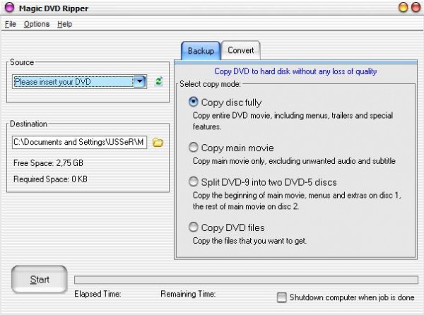 Magic DVD Ripper is a very easy and powerful DVD ripping software, which can convert DVD to VCD, SVCD, AVI(DivX), WMV, MP3, iPod and PSP formats or backup DVD to hard drive without any loss of quality. You can then enjoy them anytime without DVD discs or burn them to blank DVD or CD discs using burning software