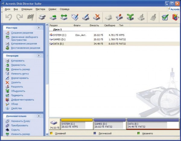 Утилита восстановления разделов позволяет восстанавливать потерянные или случайно удаленные разделы;